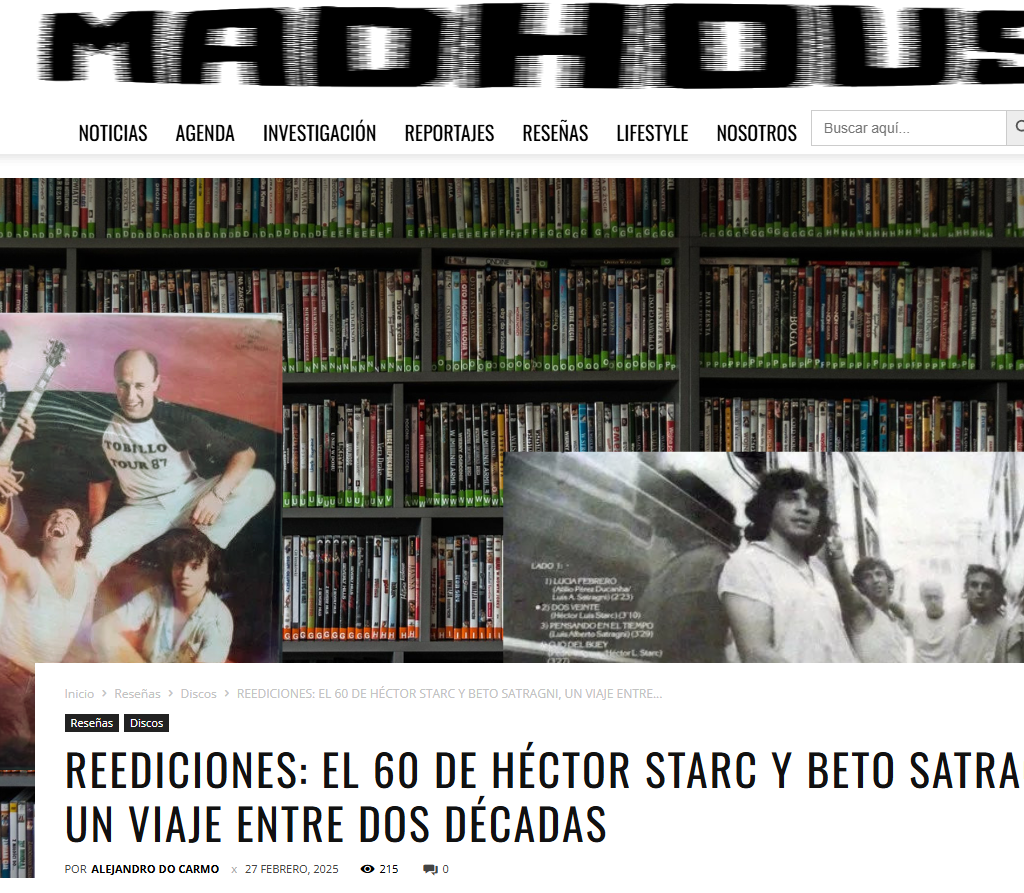 *Compartimos la nota acerca del álbum El 60 de Alejandro Do Carmo 27-02- 25 *https://madhouse.com.ar/2025/02/27/reediciones-el-60-de-hector-starc-y-beto-satragni-un-viaje-entre-dos-decadas/?fbclid=IwY2xjawI5kHhleHRuA2FlbQIxMAABHVq3uU59gXNjMGCpVd250FN9iWxoqtGBttkhcOdlCrnIHSwa0HbnlJGByA_aem_4QuTDdGa__NkqmfM0Va2SA